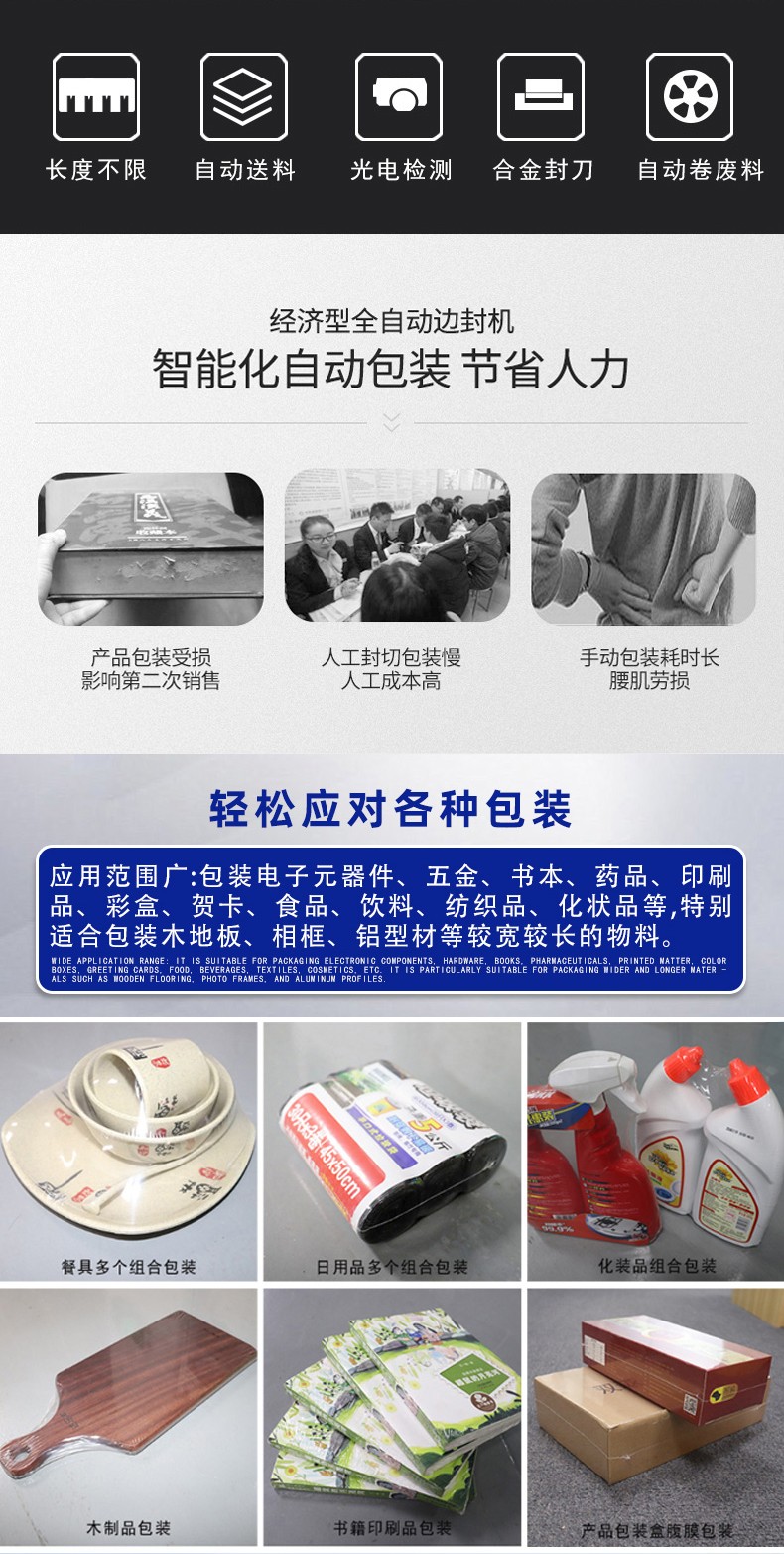 全自動(dòng)邊封熱收縮包裝機(jī)的 “自動(dòng)化程度高” 與 “適用范圍廣”,是其在各行業(yè)廣泛應(yīng)用的核心優(yōu)勢,兩者相互支撐、協(xié)同提升設(shè)備的實(shí)用價(jià)值,具體可從以下維度深入解析:
