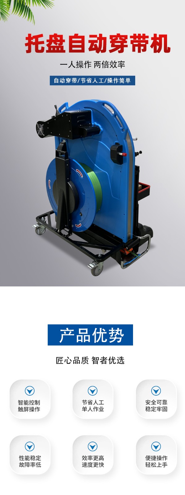自動托盤穿帶打包機是物流、制造等行業(yè)中實現(xiàn)托盤貨物自動化捆扎的核心設備,通過機械結(jié)構(gòu)與智能控制的協(xié)同,將貨物與托盤牢固綁定,提升運輸穩(wěn)定性與作業(yè)效率。以下從核心功能、技術優(yōu)勢、選型要點及維護建議四個維度,進行全面梳理: