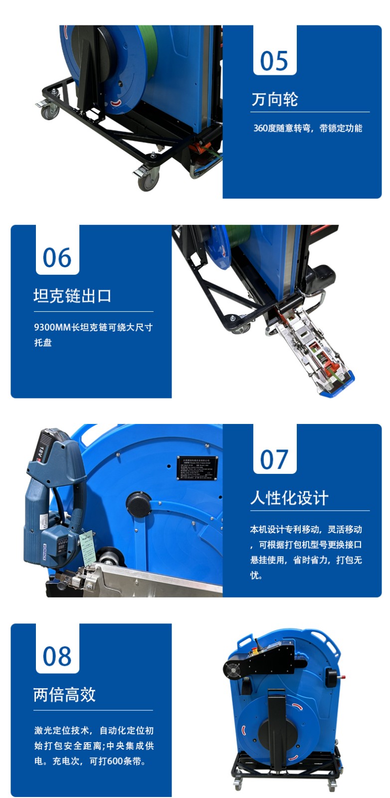 設備圍繞 “貨物 - 托盤一體化固定” 展開,核心功能覆蓋打包全環(huán)節(jié),無需人工干預關鍵動作: