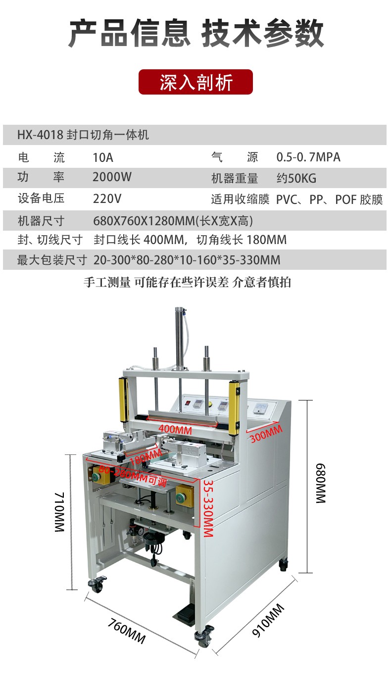 高效快捷:封口速度比傳統(tǒng)設備快,部分機型每分鐘可完成 50 次精準封口,能有效提高生產(chǎn)效率。 操作簡便:通常采用一鍵啟動或腳踏開關控制,操作人員只需簡單培訓即可上手操作。 封口質(zhì)量好:采用雙面加熱封口,壓合平整美觀,封口牢固,且封口長度、寬度等參數(shù)可根據(jù)需求調(diào)整。 適應性強:可適用于 PVC、PP、POF 等多種材質(zhì)的收縮膜,還能根據(jù)不同產(chǎn)品規(guī)格進行調(diào)整,兼容多種尺寸的包裝材料。 安全性高:部分機型配備急停按鈕等安全裝置,且外觀設計圓潤,無棱角,可減少操作人員受傷的風險。 應用場景 廣泛應用于食品、化工、電子、醫(yī)藥、日化等行業(yè),可用于對各種產(chǎn)品的包裝材料進行封口和切角處理,如食品包裝袋、日化用品包裝袋、電子產(chǎn)品包裝盒等的封裝。 代表產(chǎn)品 如中堡智能科技實業(yè)有限公司的HX-4018 智能氣動封口切角機、東莞博冠包裝實業(yè)有限公司的氣動封口切角機等,均具有運行穩(wěn)定、包裝速度快、多規(guī)格適配等特點。