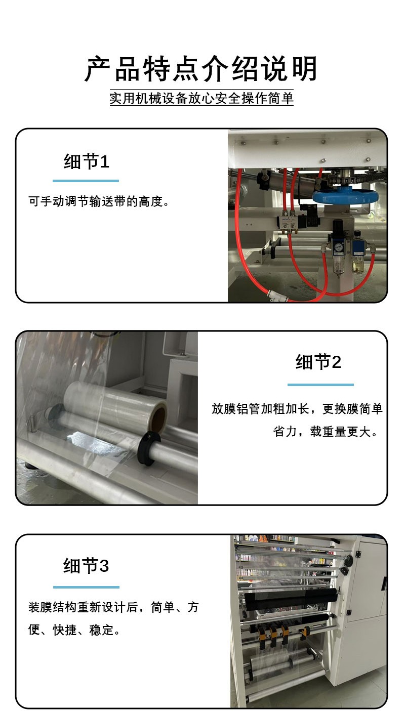 - 一體化自動(dòng)化作業(yè),降低人工成本設(shè)備集進(jìn)料、送膜、封切、收縮、出料于一體,全程無需人工干預(yù),僅需 1-2 名操作人員負(fù)責(zé)物料補(bǔ)充與設(shè)備巡檢,相比傳統(tǒng)人工封切 + 手動(dòng)收縮的模式,可減少 70% 以上的人工投入,尤其適合大批量連續(xù)化生產(chǎn)場景。