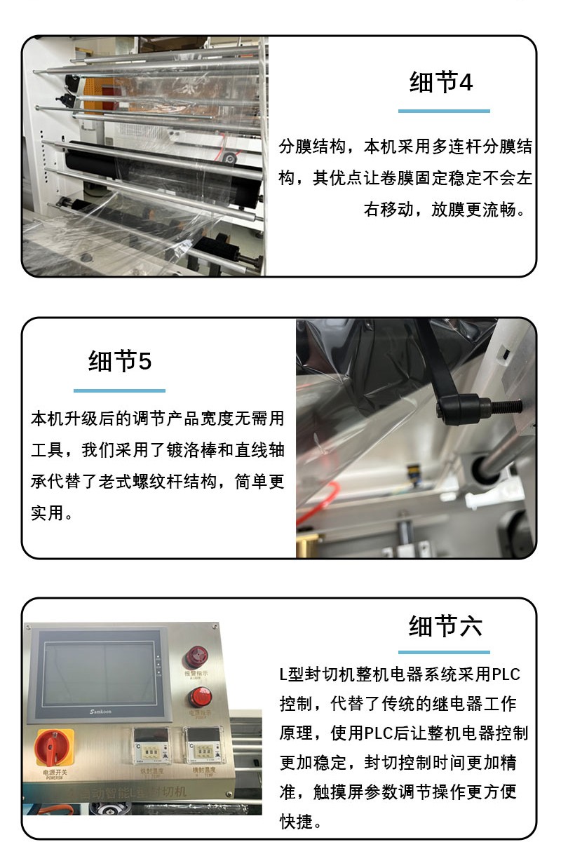 - 封切精度高,包裝成品率優(yōu)異采用 PLC 可編程控制系統(tǒng)與伺服電機(jī)驅(qū)動(dòng),搭配光電感應(yīng)定位技術(shù),能精準(zhǔn)識(shí)別產(chǎn)品尺寸,實(shí)現(xiàn)膜料的定長輸送與封切,封口線平整牢固,切口光滑無毛刺,有效避免因封切偏差導(dǎo)致的膜料浪費(fèi),成品率可達(dá) 99.5% 以上。同時(shí),特制耐高溫鋁合金封刀具備防粘刀功能,適配 POF、PVC、PE 等多種熱收縮膜,杜絕膜料粘連封刀造成的包裝瑕疵。