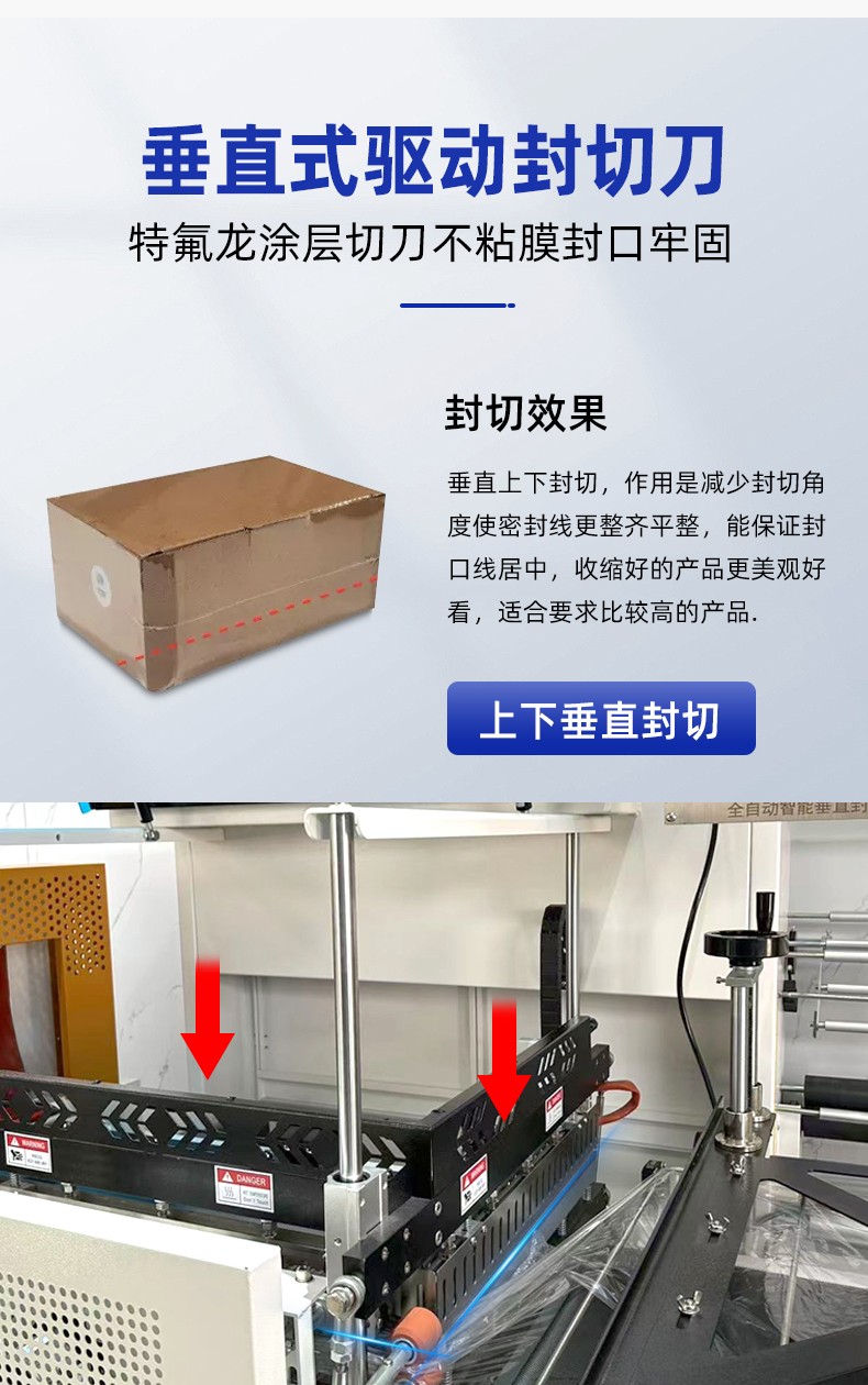 適合規則 / 不規則盒裝、瓶裝、禮盒裝產品(如食品禮盒、醫藥盒、日化套裝),尤其適配批量≥300 件 / 小時的生產線,相比 L 型封切機更適合易折皺、需精準封口的產品。