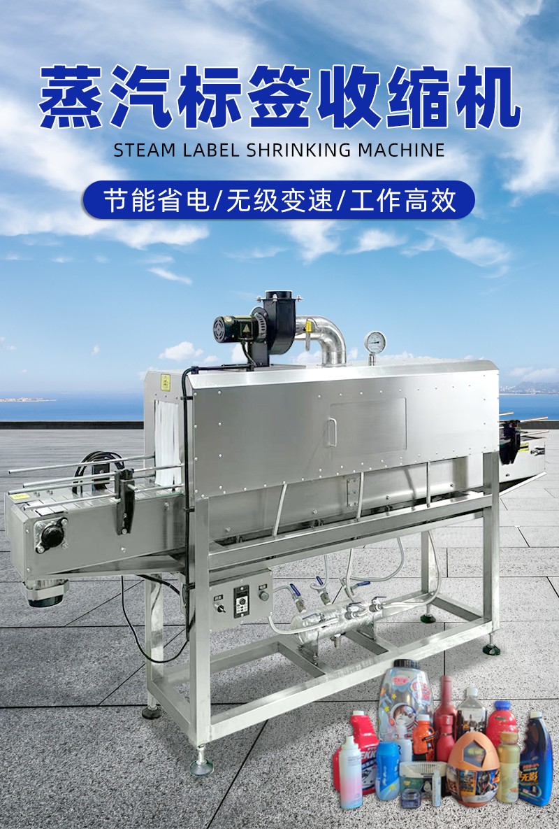 在收縮效果上,熱風(fēng)收縮受限于熱風(fēng)流動(dòng)的不均勻性,容易出現(xiàn)局部溫度過高或過低的情況,導(dǎo)致膜材收縮后表面產(chǎn)生褶皺、氣泡,或邊角處收縮不緊實(shí),影響包裝美觀度;而蒸汽具有良好的滲透性和擴(kuò)散性,能夠均勻包裹產(chǎn)品和膜材的每一個(gè)部位,使膜材受熱同步且均勻,收縮后能緊密貼合產(chǎn)品表面,無論是規(guī)則的瓶裝,還是不規(guī)則的異形件,都能實(shí)現(xiàn)平整光滑的包裝效果,大幅降低次品率。