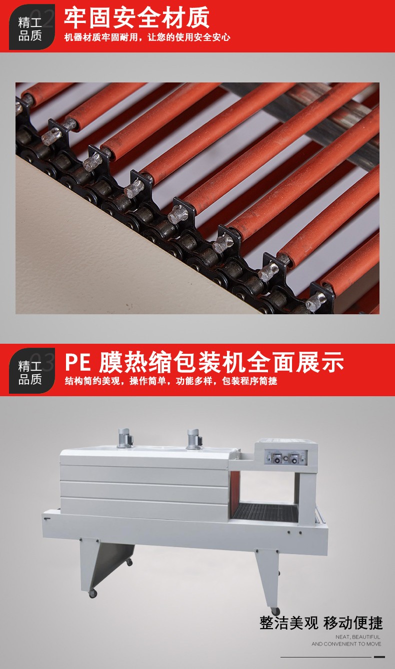 - 例如,當把一個產品用 PE 薄膜包裹好,放入 PE 熱收縮機中,機器啟動后,薄膜在熱的作用下,就像被賦予了 “生命力” 一樣,逐漸收縮,最后緊貼在產品的輪廓上,就像給產品穿上了一層定制的保護 “外衣”。