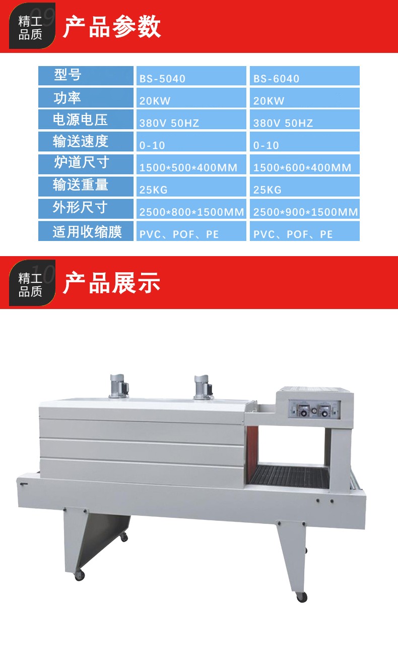 - 主要包括輸送帶和驅動電機。輸送帶用于承載并輸送被 PE 薄膜包裹的產品通過加熱區域。驅動電機控制輸送帶的速度,這個速度是可以調節的。其重要性在于確保產品在加熱區域停留足夠的時間,讓 PE 薄膜充分收縮。例如,如果輸送帶速度太快,PE 薄膜可能來不及完全收縮就離開了加熱區域,導致包裝質量不佳;如果速度太慢,又會影響包裝效率。