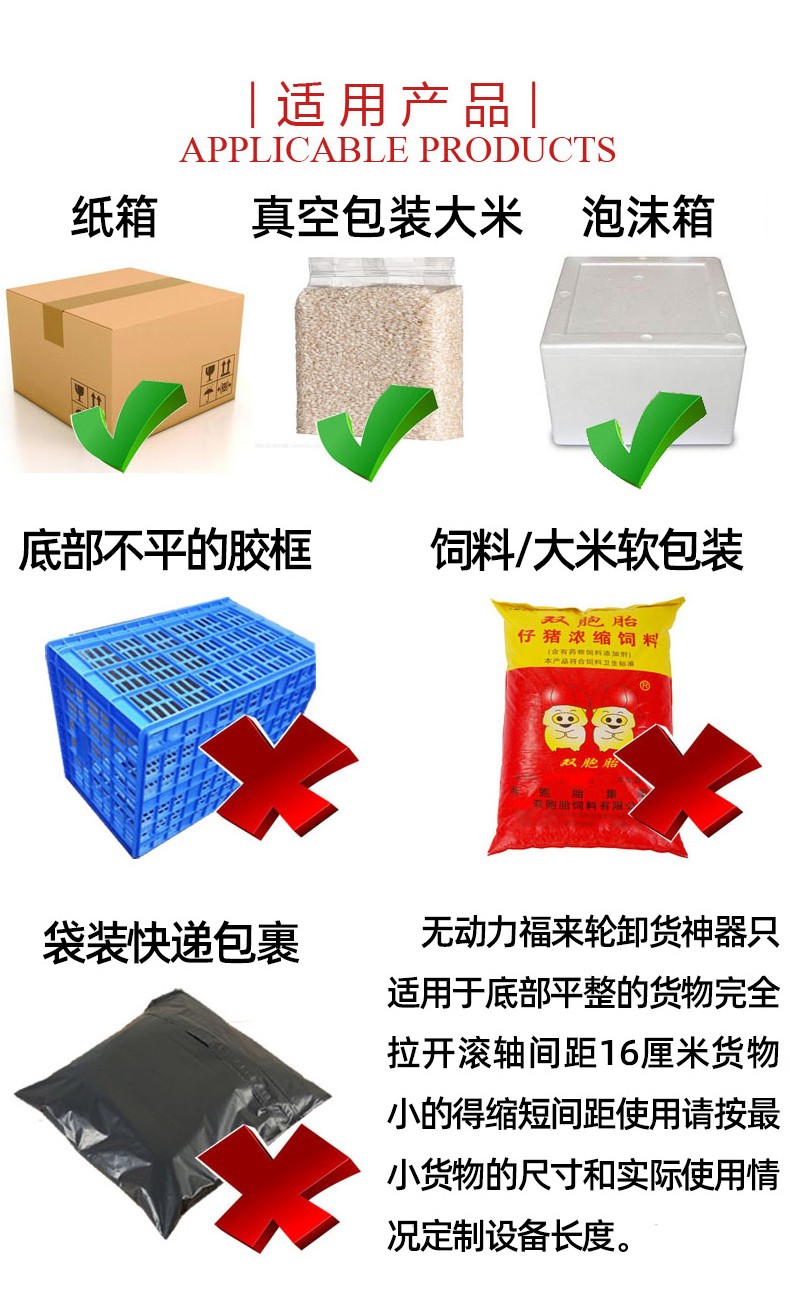 - 在無動(dòng)力滾輪輸送機(jī)中,當(dāng)物品放置在滾輪上時(shí),利用物品自身的重力在傾斜的輸送機(jī)上產(chǎn)生下滑分力,或者通過人工施加外力,使物品與滾輪之間產(chǎn)生相對(duì)運(yùn)動(dòng)。由于滾輪可以自由旋轉(zhuǎn),物品就在滾輪的滾動(dòng)下向前移動(dòng)。