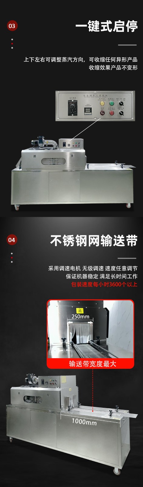 蒸汽收縮一體機的優勢源于其對 “蒸汽加熱” 特性的充分利用,以及人性化的結構設計,具體特點如下: